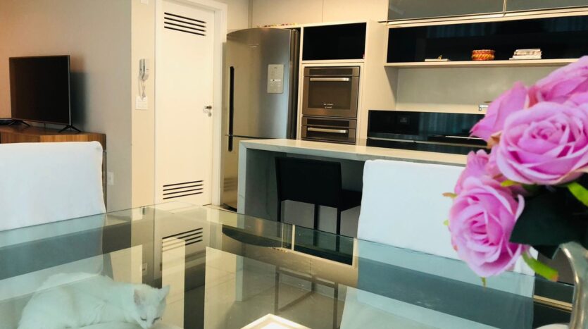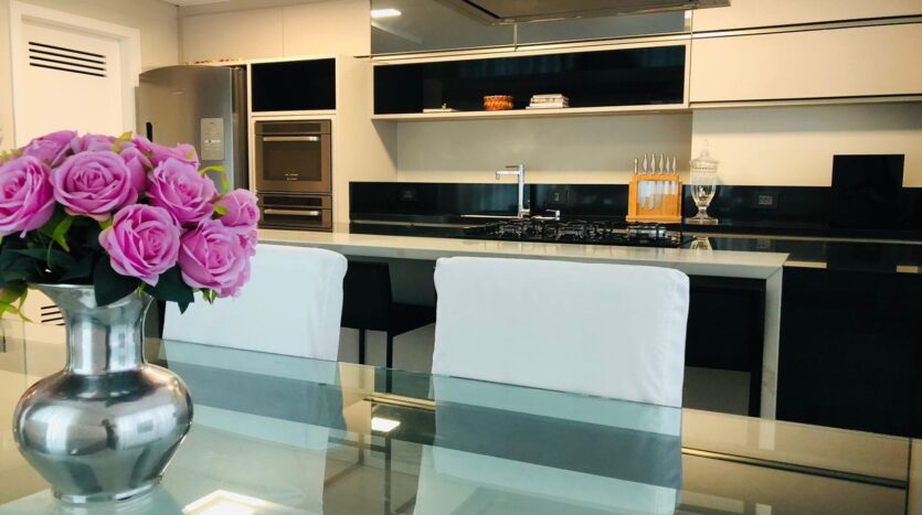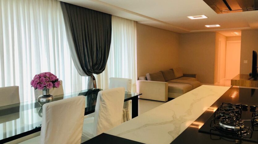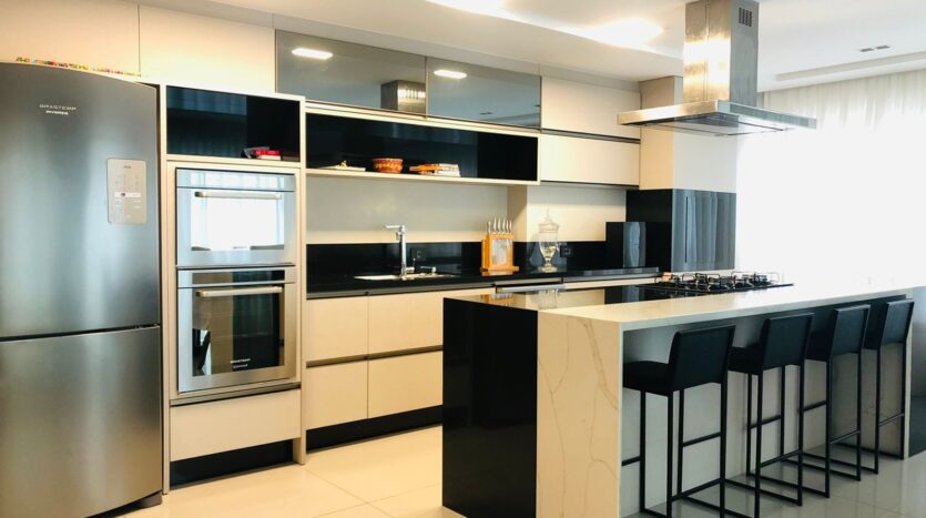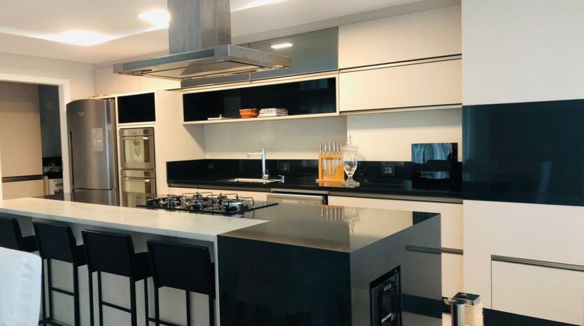 Cobertura com 240,00m, 3 suítes com closet. terraço amplo com ofurô Spa de 8 lugares, living integrado, churrasqueira, cozinha com todos móveis e eletrodomésticos inclusos, inclusive máquina de lavar louças, área de serviço também com móveis e máquina lava e seca. Aquecimento de água com energia solar, sistema de ar condicionado central.