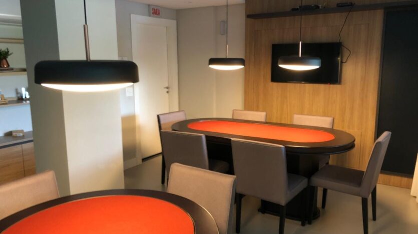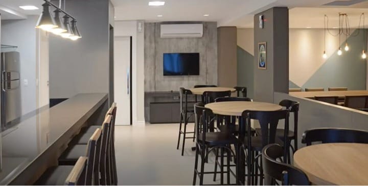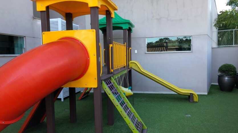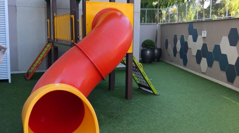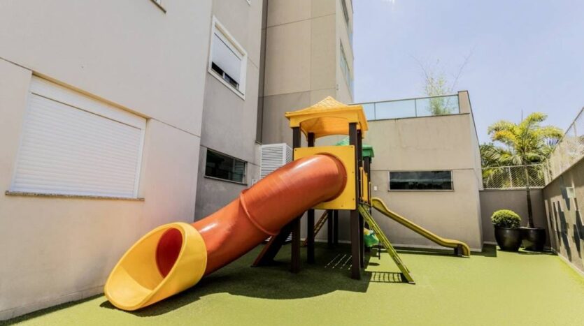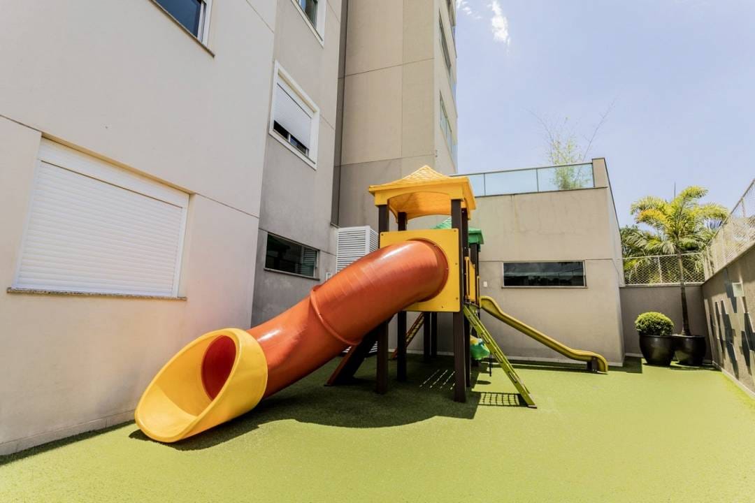 Condomínio oferece piscina, varanda externa, academia, salão de festas com Pub e playground.