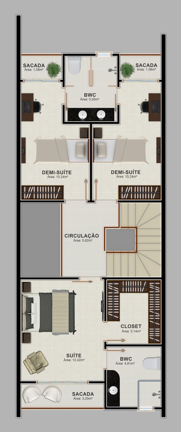 sendo uma com ampla sacada