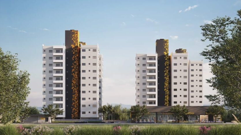 O empreendimento conta com 4 torres, tendo 5 apartamentos por andar
