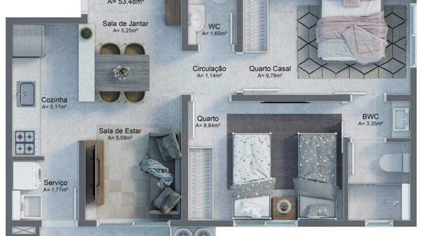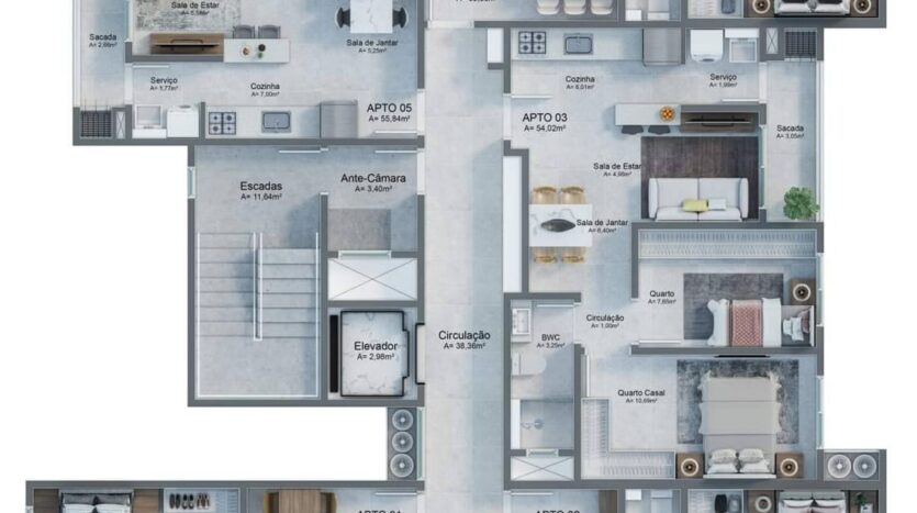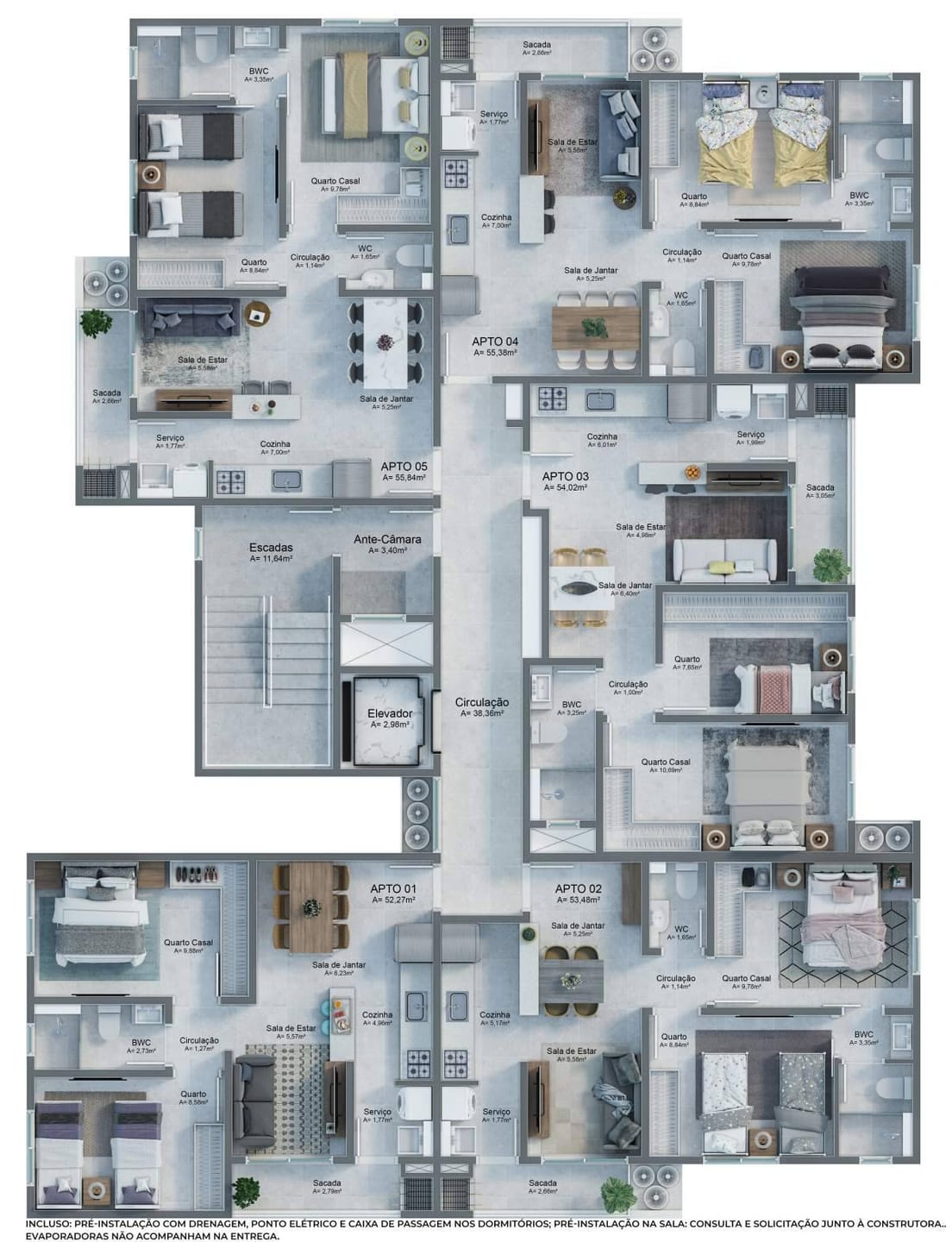 * Plantas de 52 m², 53 m², 54 m² e 55 m²