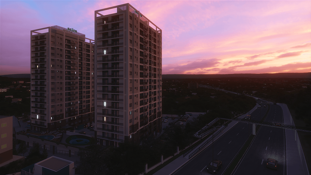 O Scire Fortaleza é ideal para quem busca desfrutar de seu tempo com qualidade. Conta com apartamentos de 2 quartos e também opções com suíte, demi-suíte ou lavabo. O empreendimento possui piscina, academia, salão de festa, sala de ferramentas compartilhadas, playground, espaço pet e muito mais.